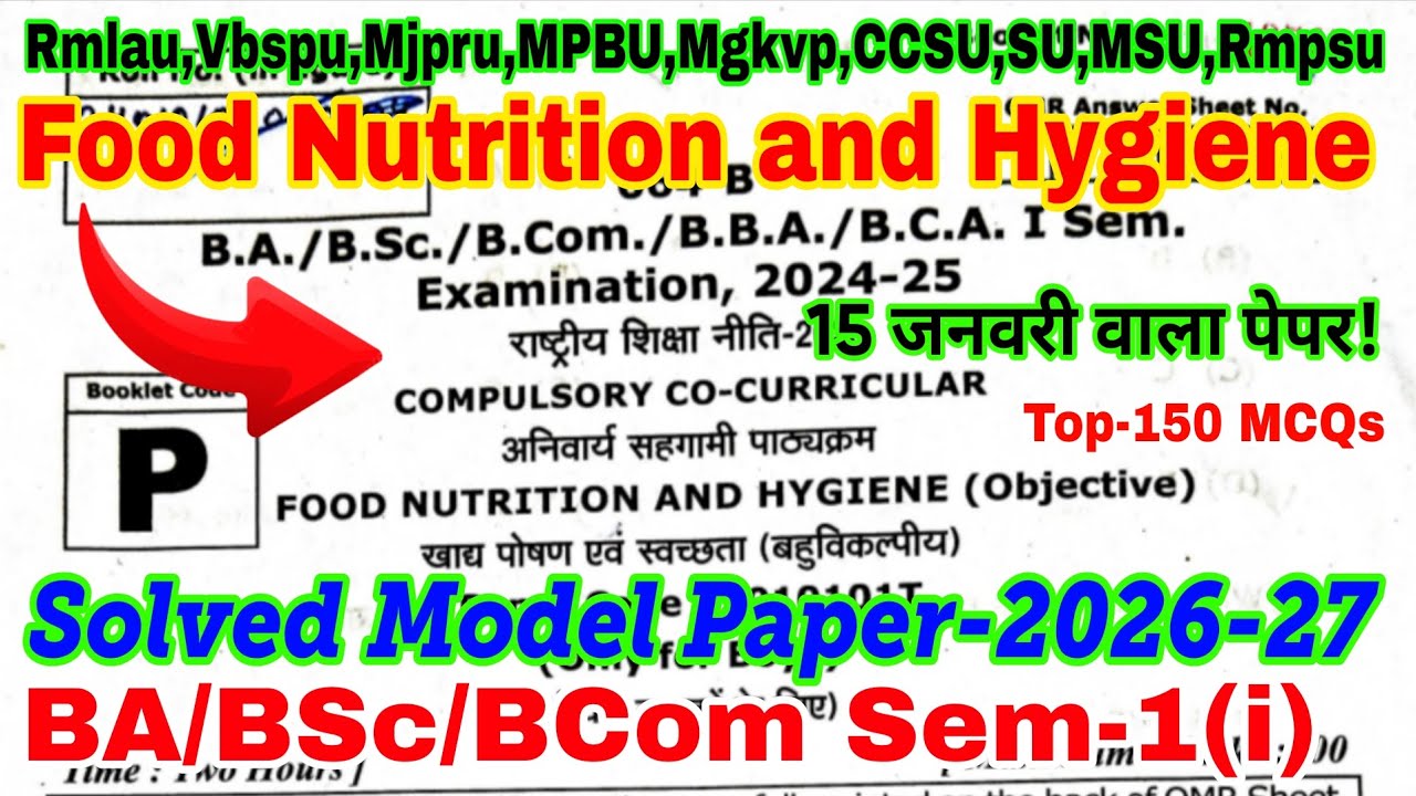 meals vitamin and hygiene ka mannequin paper 2027 ba bsc bcom first 12 months 1st semester