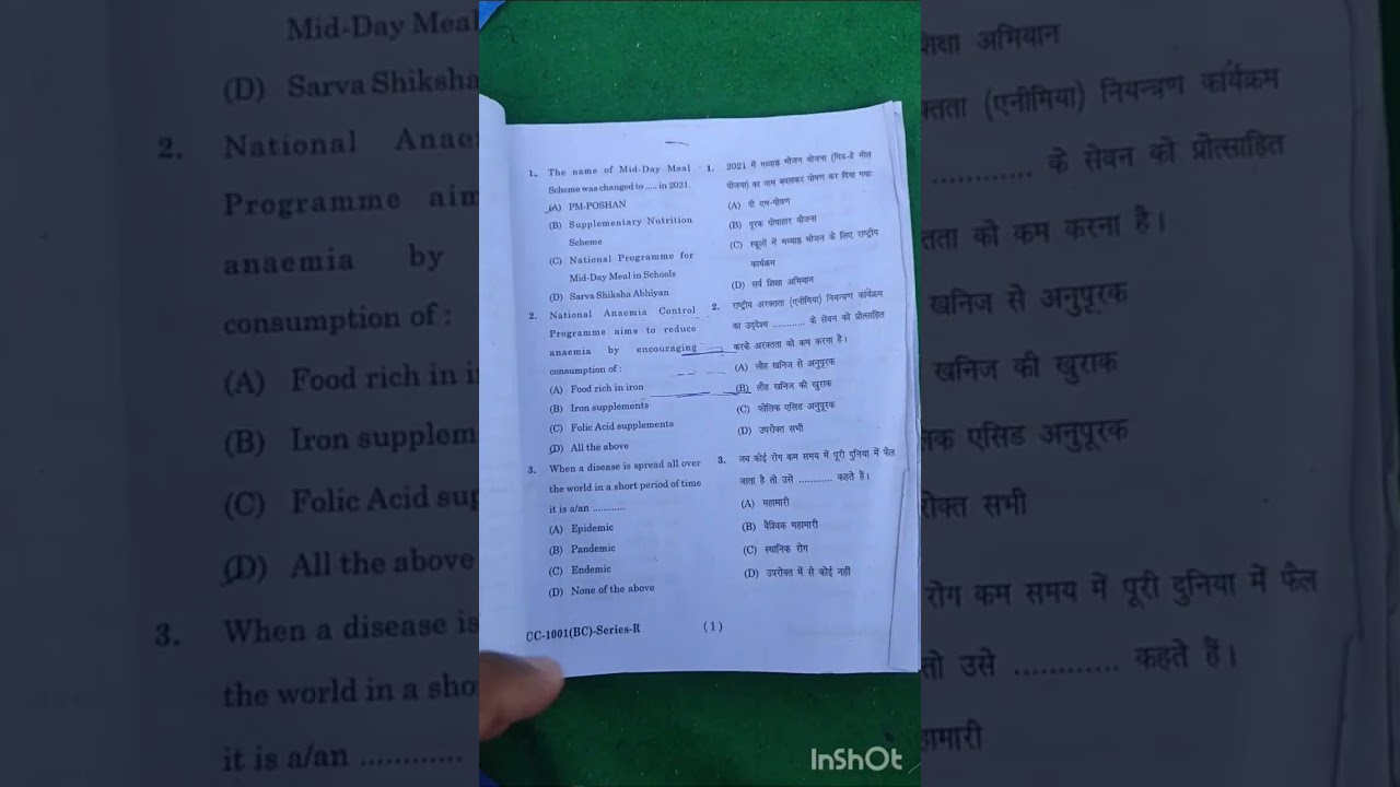 Meals Vitamin & Hygiene Papers hindi