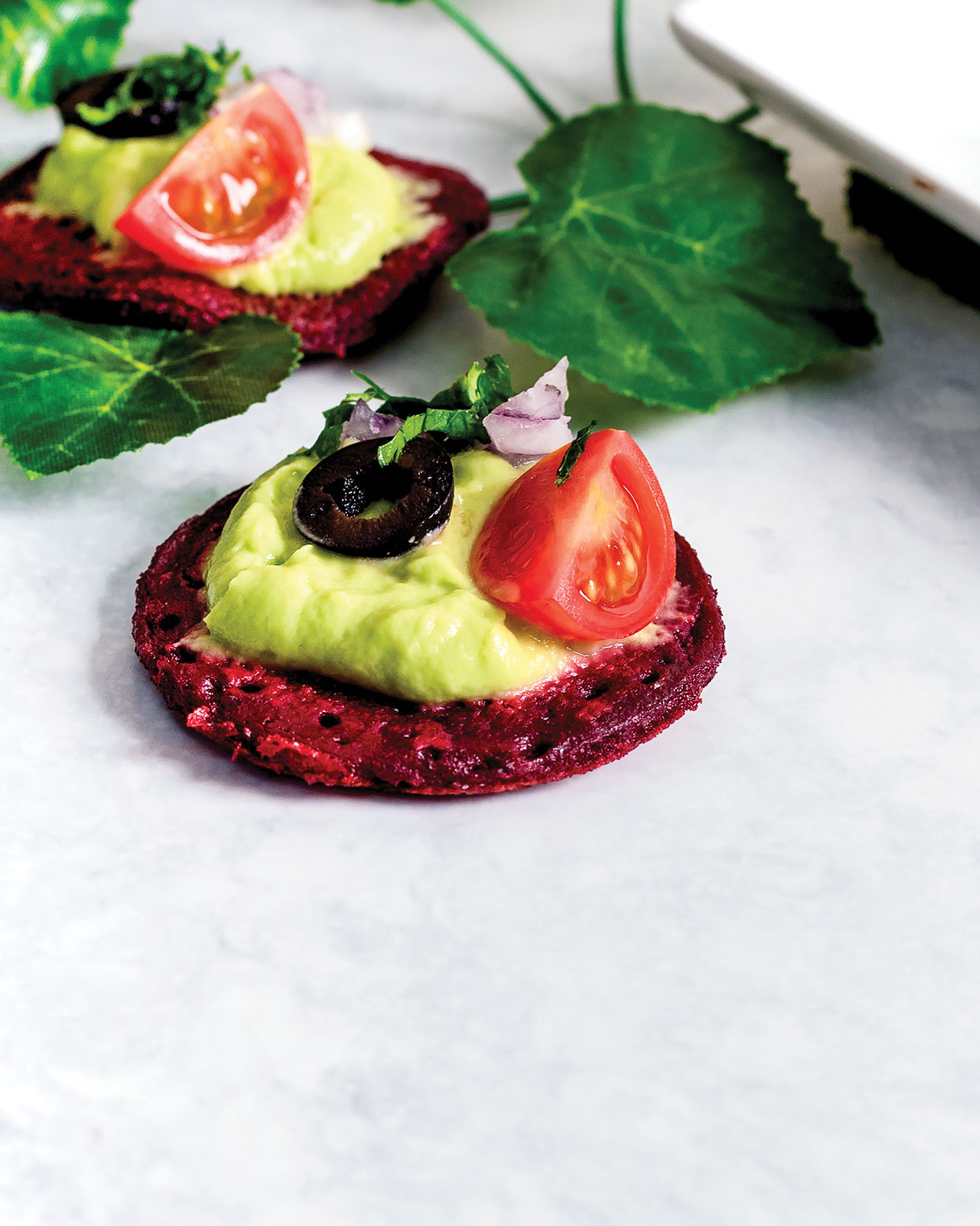 Excellent for an intimate afternoon tea or an at-home occasion platter, their vibrant color comes from contemporary grated beetroot, offering a tender, barely earthy base that contrasts completely with the creamy avocado topping.