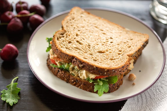 Serve as a sandwich with toasted bread. Try it on whole wheat bread with sliced tomatoes and a bed of greens, like baby spinach, baby kale, or romaine lettuce.