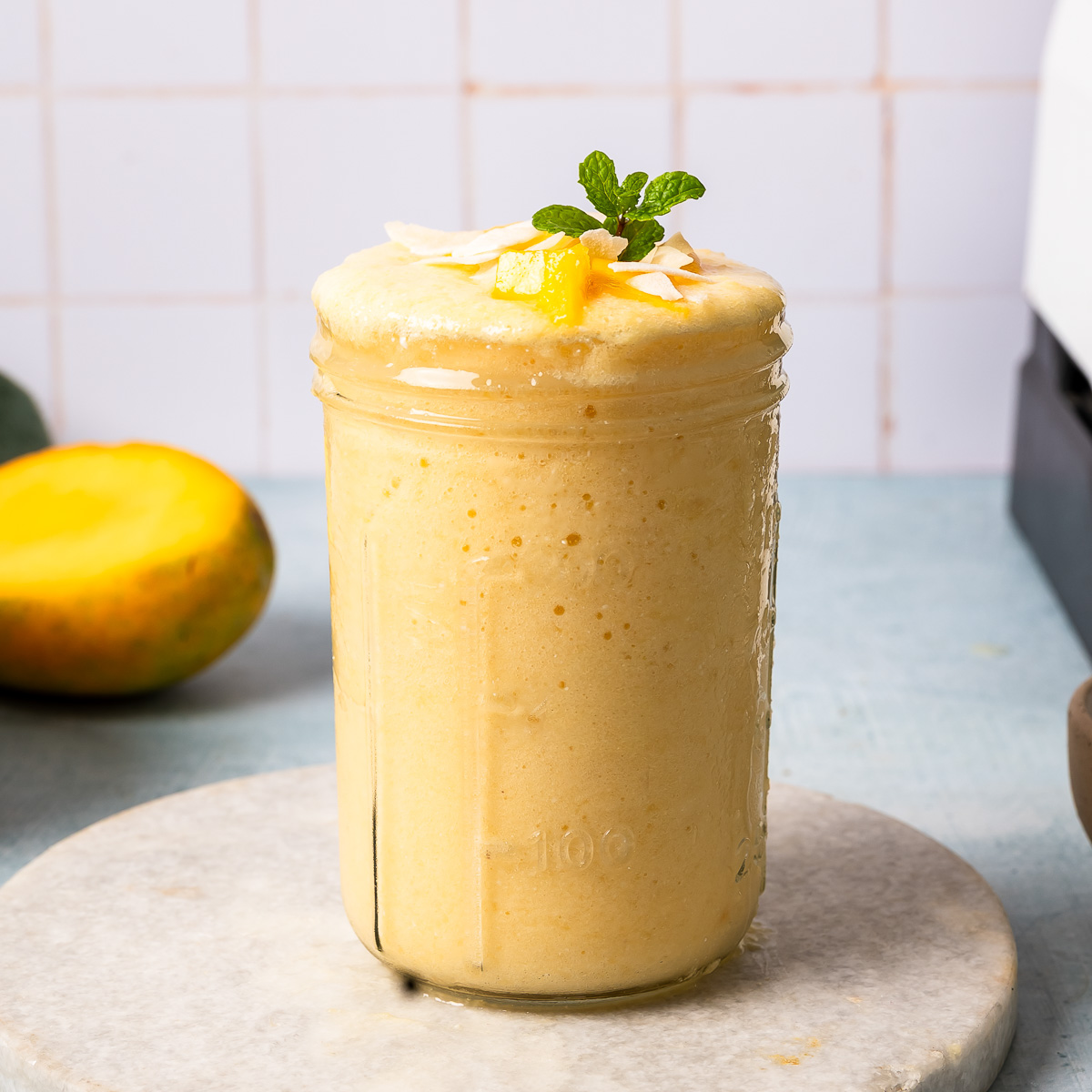 Mix cottage cheese, water, mango, and pineapple collectively on excessive velocity till clean.