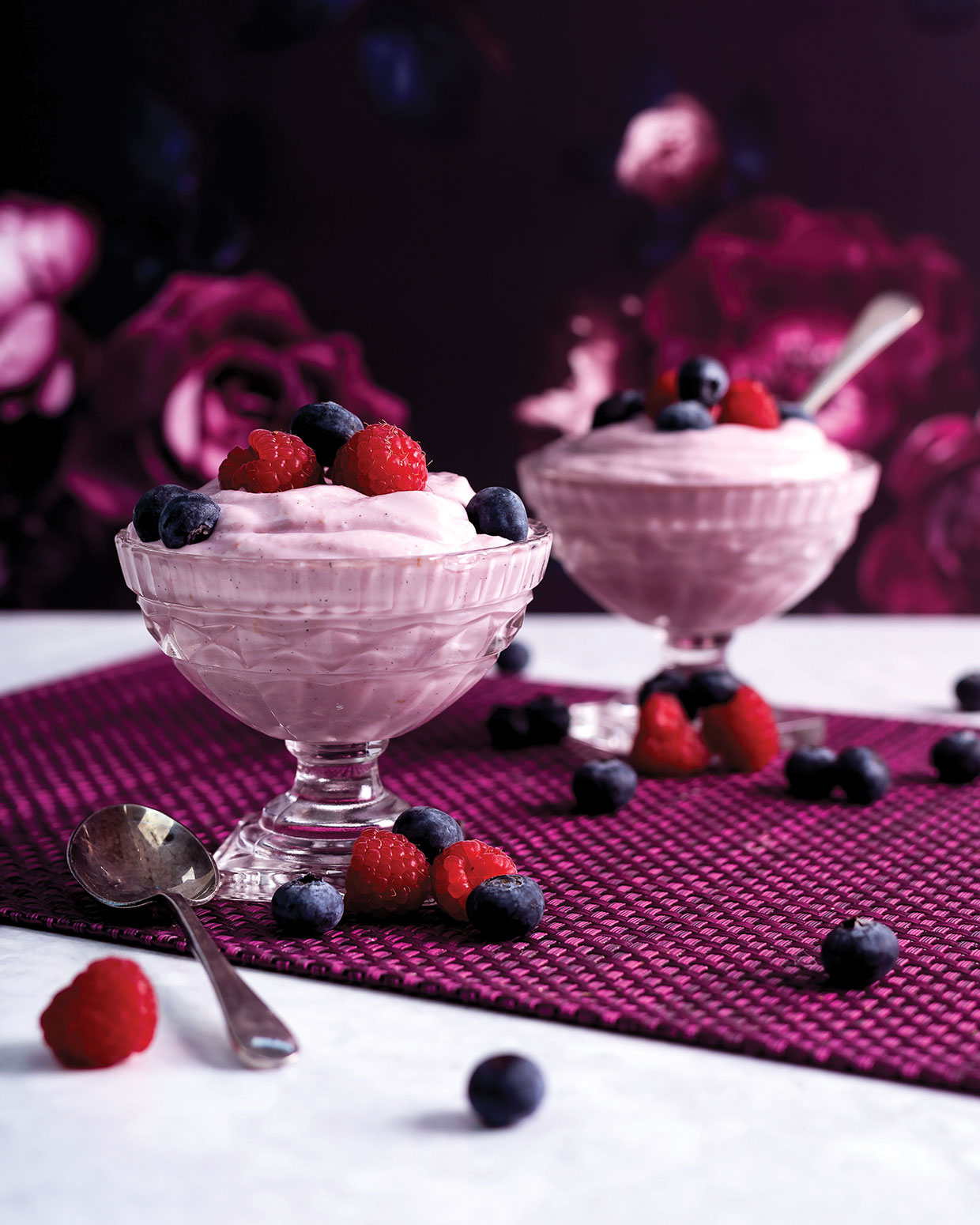 Serve it in chilled glass ramekins topped with additional berries for a pop of color and a success of acidity.