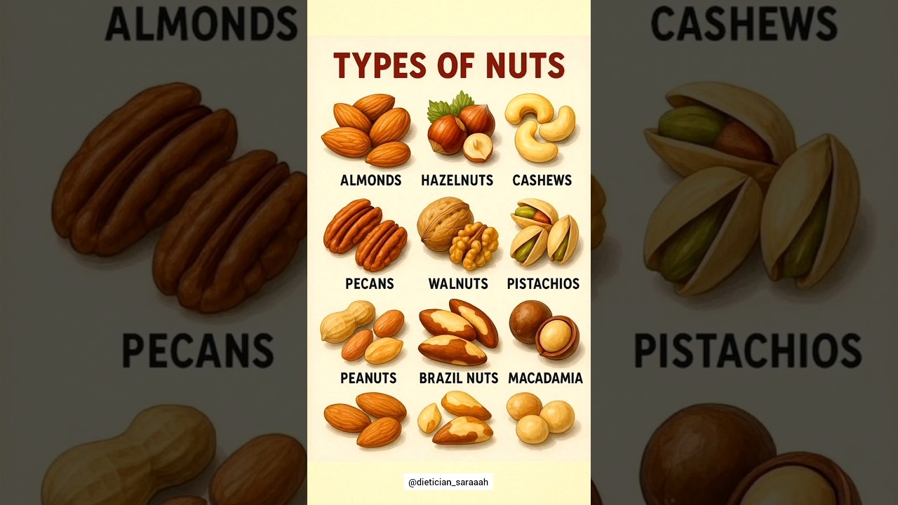 #TypesOfNuts #HealthyNuts #NutsBenefits #Almonds #Walnuts #Cashews #Pistachios #HealthyEating #WeightLoss #HeartHealth #NutritionTips #DietitianApproved #ProteinSnacks #NutsForHealth